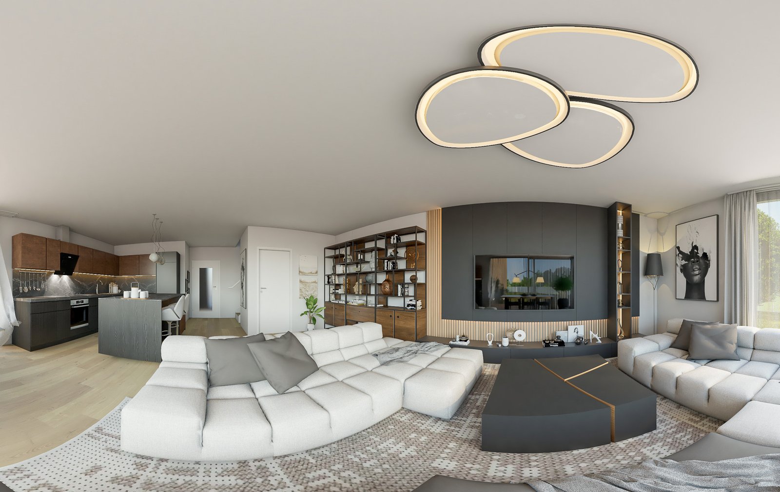 Čisté linie, velkoformátová okna pro dostatek světla a důraz na propojení s exteriérem.